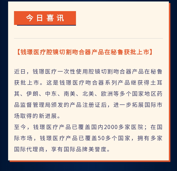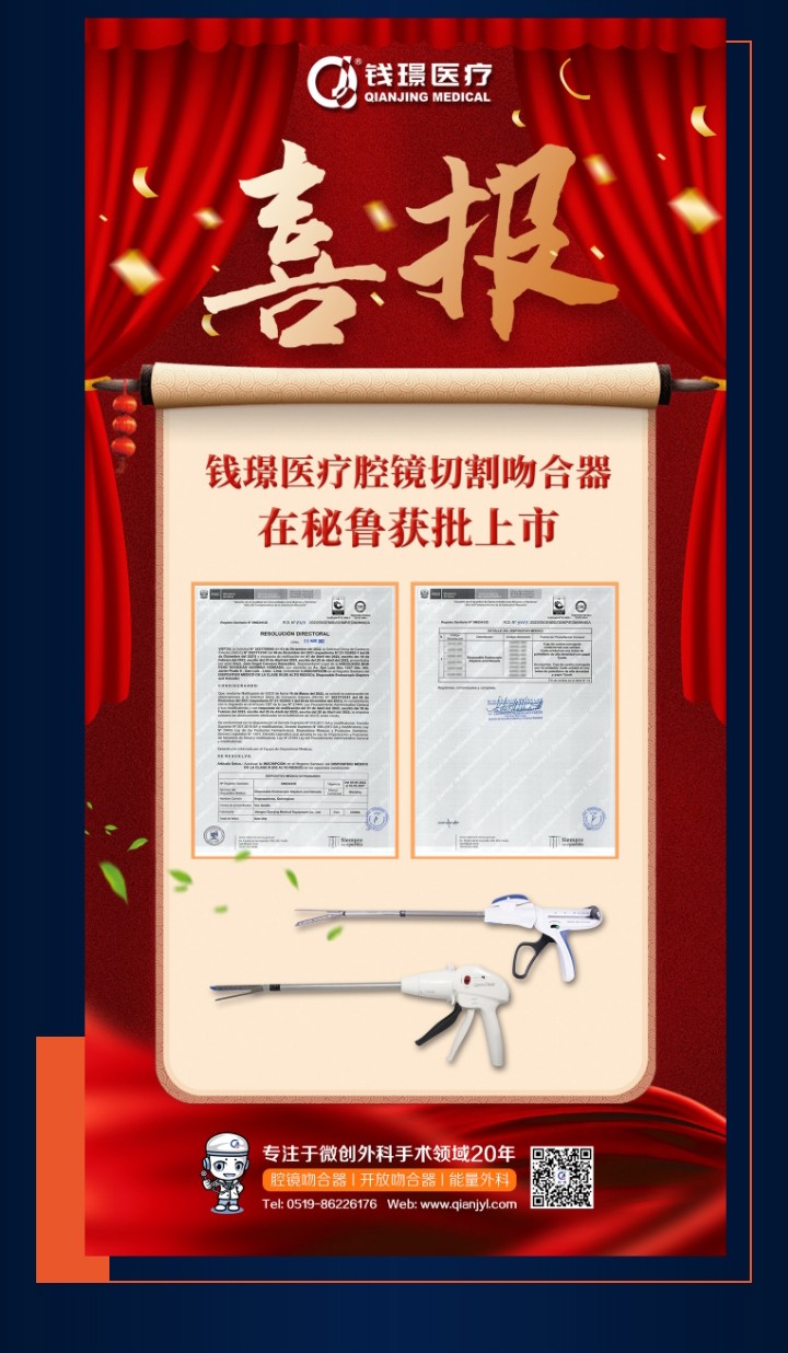 喜訊 | 錢璟醫療腔鏡切割吻合器產品在秘魯獲批上市